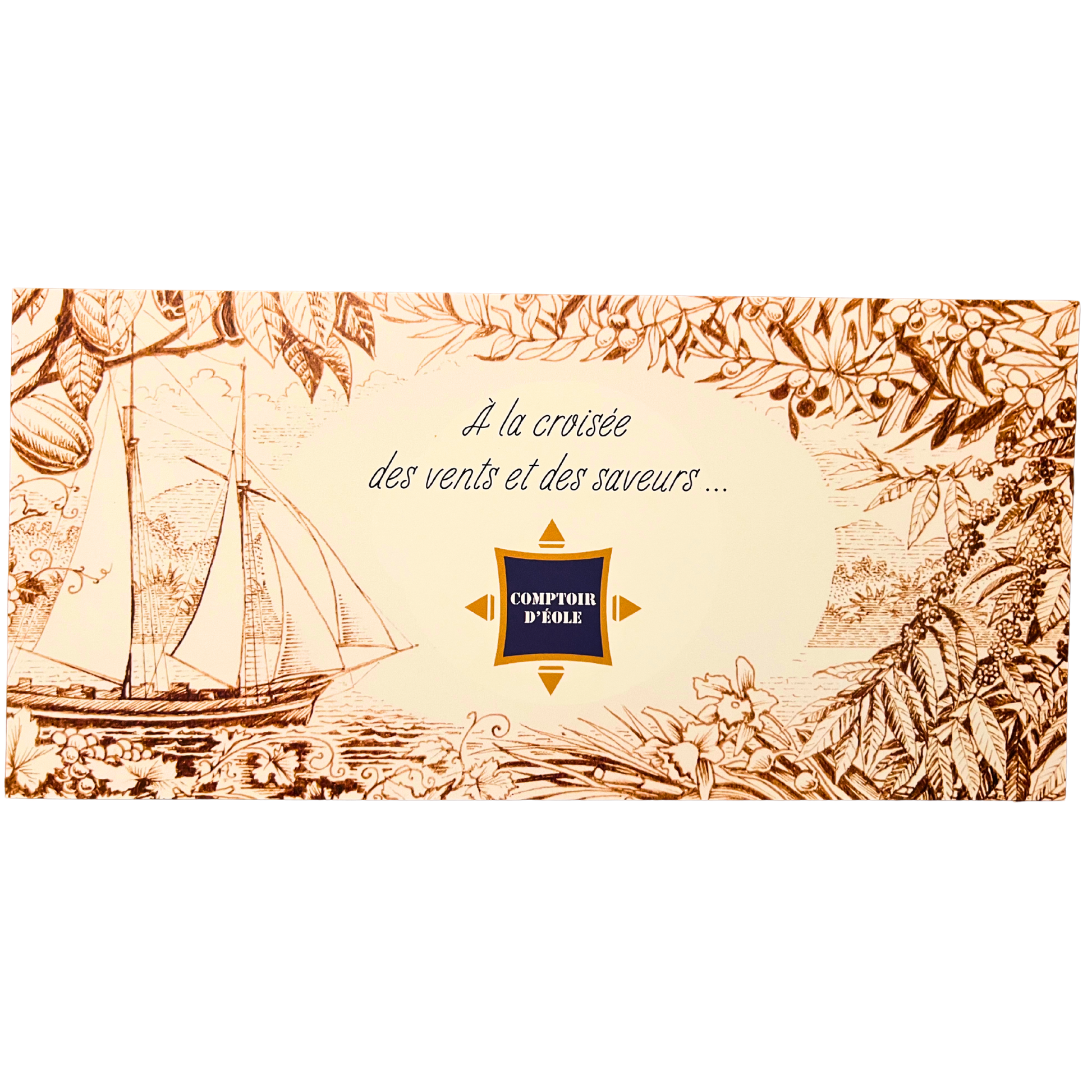 Chaque illustration prolonge l’univers du Comptoir d’Éole, entre voyage, matière et temps long. Le sépia donne de la profondeur au trait, évoque la mémoire, les routes parcourues et la trace laissée par le geste artisanal.